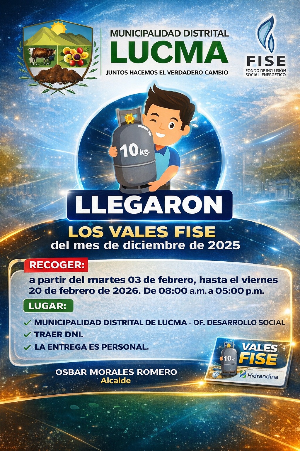 ๐๐๐, pone a tu disposiciรณn los vales del mes de diciembre 2025, pensados para apoyar la economรญa de nuestros hogares y garantizar el acceso a energรญa limpia y segura.